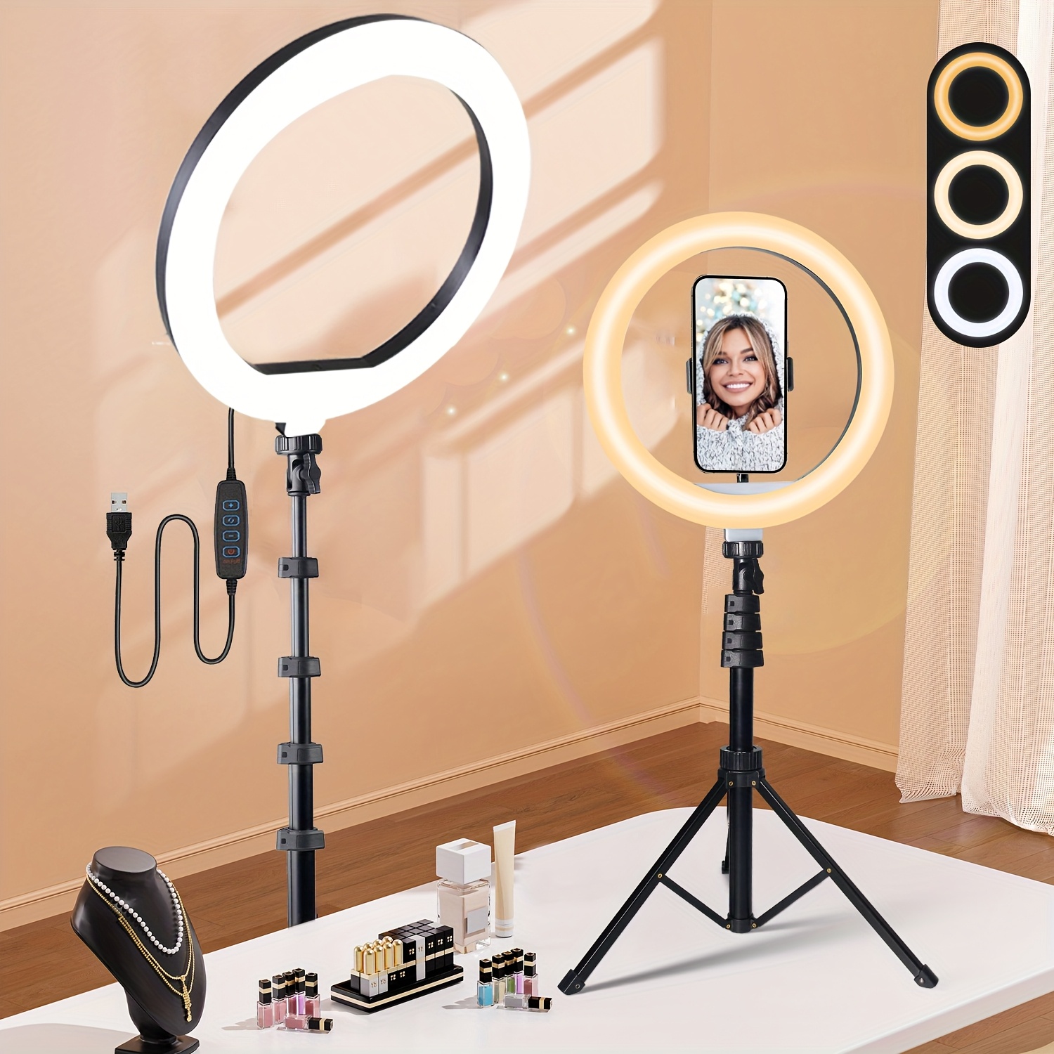 10-inch Featuring A 63-inch Adjustable Tripod And Phone Holder, Ideal For Makeup, Vlogging, Youtube, Tiktok, Zoom, And Live Streaming - An Holiday Gift For Christmas, New Year, And Thanksgiving This product is available on TEMU. Click the button above to view full details, photos, and reviews on the TEMU website. Prices may vary.