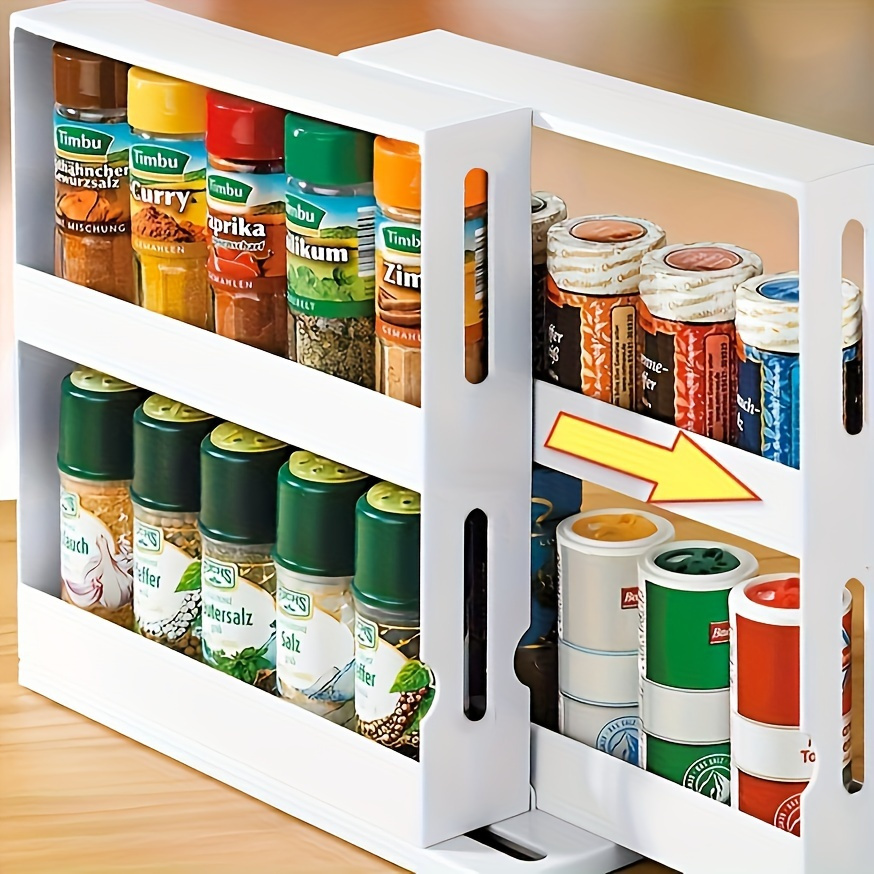 2 Tier Rotating Spice Rack - Large Capacity Kitchen Organizer For Countertops And Cabinets, Multi-functional Pull-out Storage Racks This product is available on TEMU. Click the button above to view full details, photos, and reviews on the TEMU website. Prices may vary.