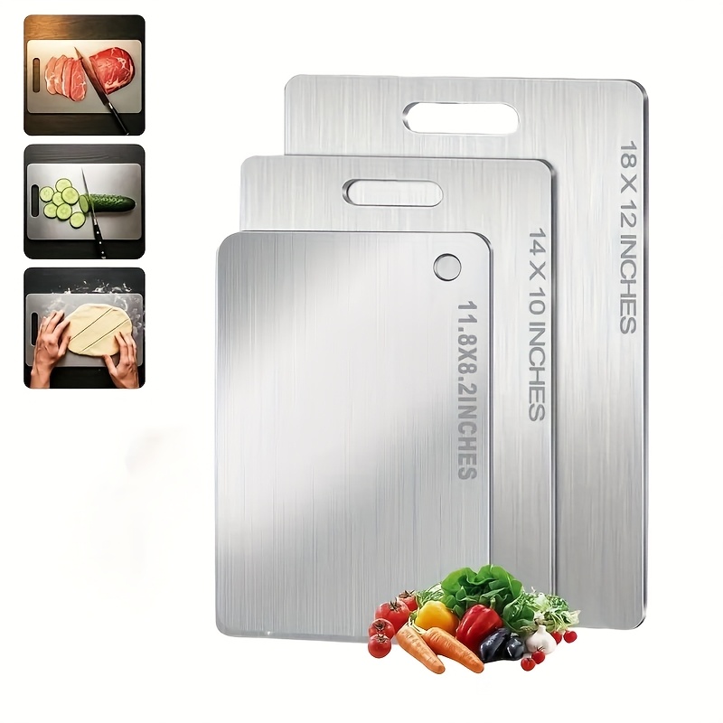 2025 New Stainless Steel Cutting Boards, Double-sided Sturdy Metal Cutting Board, In Large, Medium, And Small Sizes For Your Kitchen This product is available on TEMU. Click the button above to view full details, photos, and reviews on the TEMU website. Prices may vary.