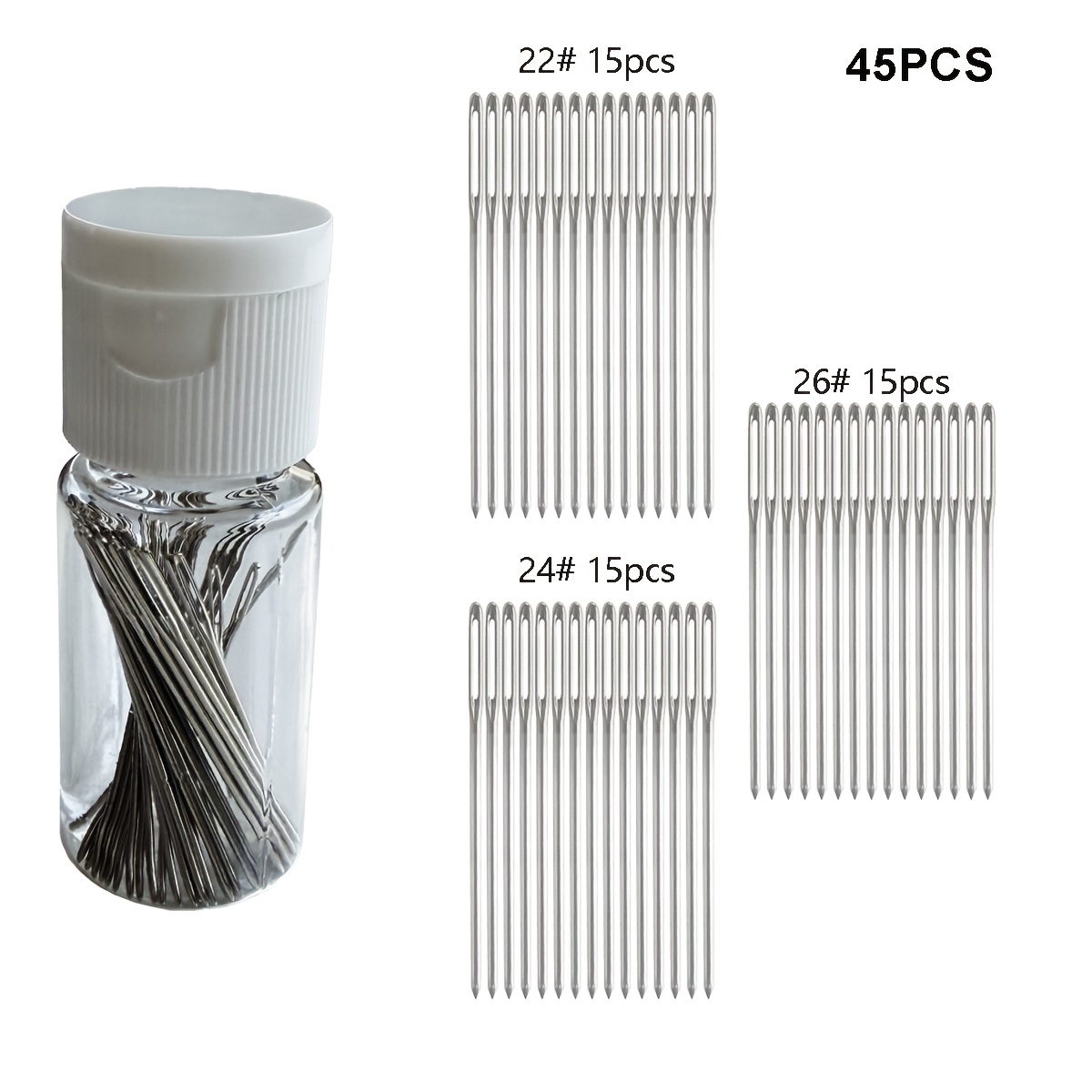 45pcs Stitch Needle Set With Silvery Pillow Case, Includes 22/24/26 Sizes And Threading Bottle For Hand Embroidery Diy Sewing Kit