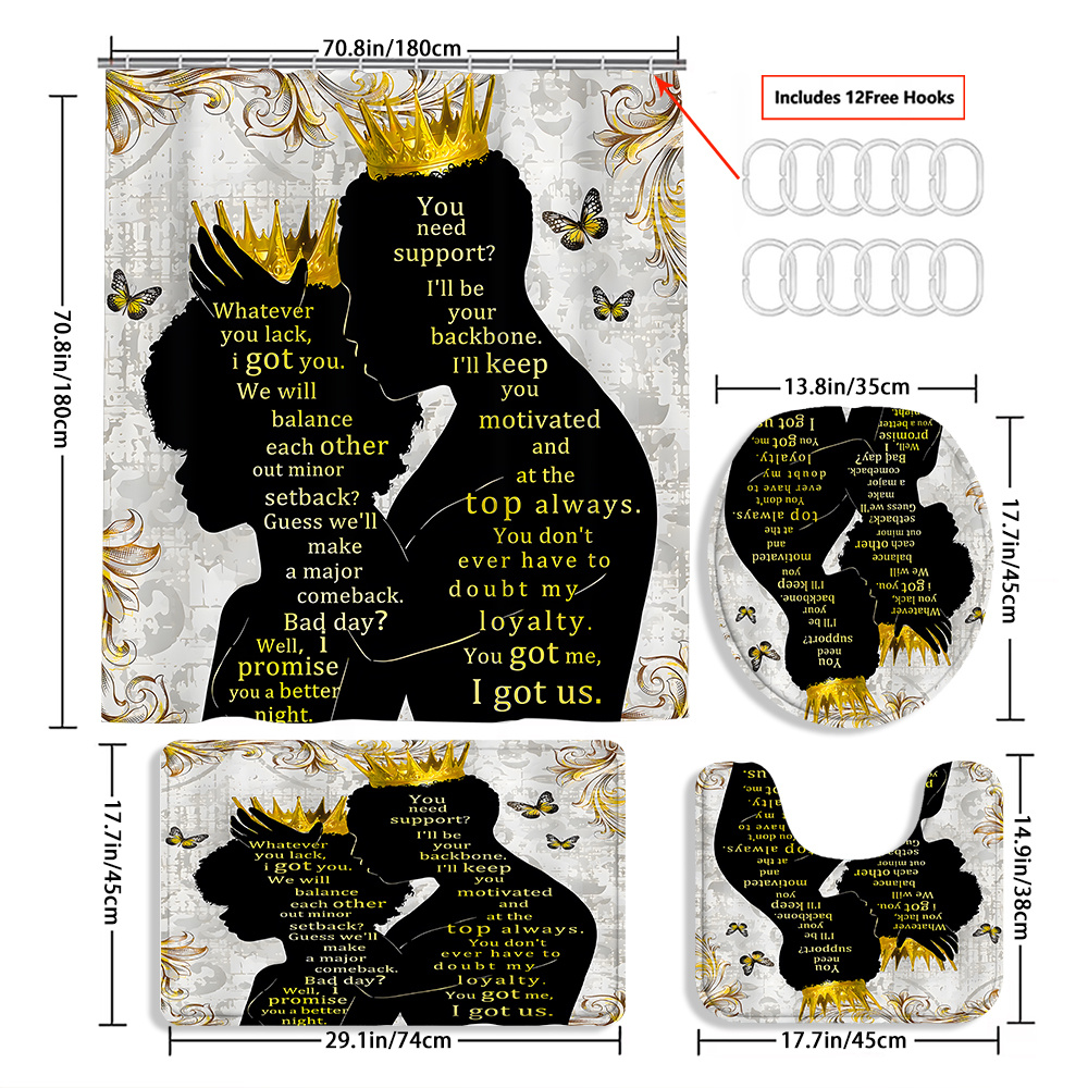 4pcs Crown Curtain Shower Curtain Decoration, Beautiful Housewarming Gift Decoration, Waterproof Shower Curtain And Toilet Floor Mat Three-piece Set Comes With 12 Shower Curtain Hooks