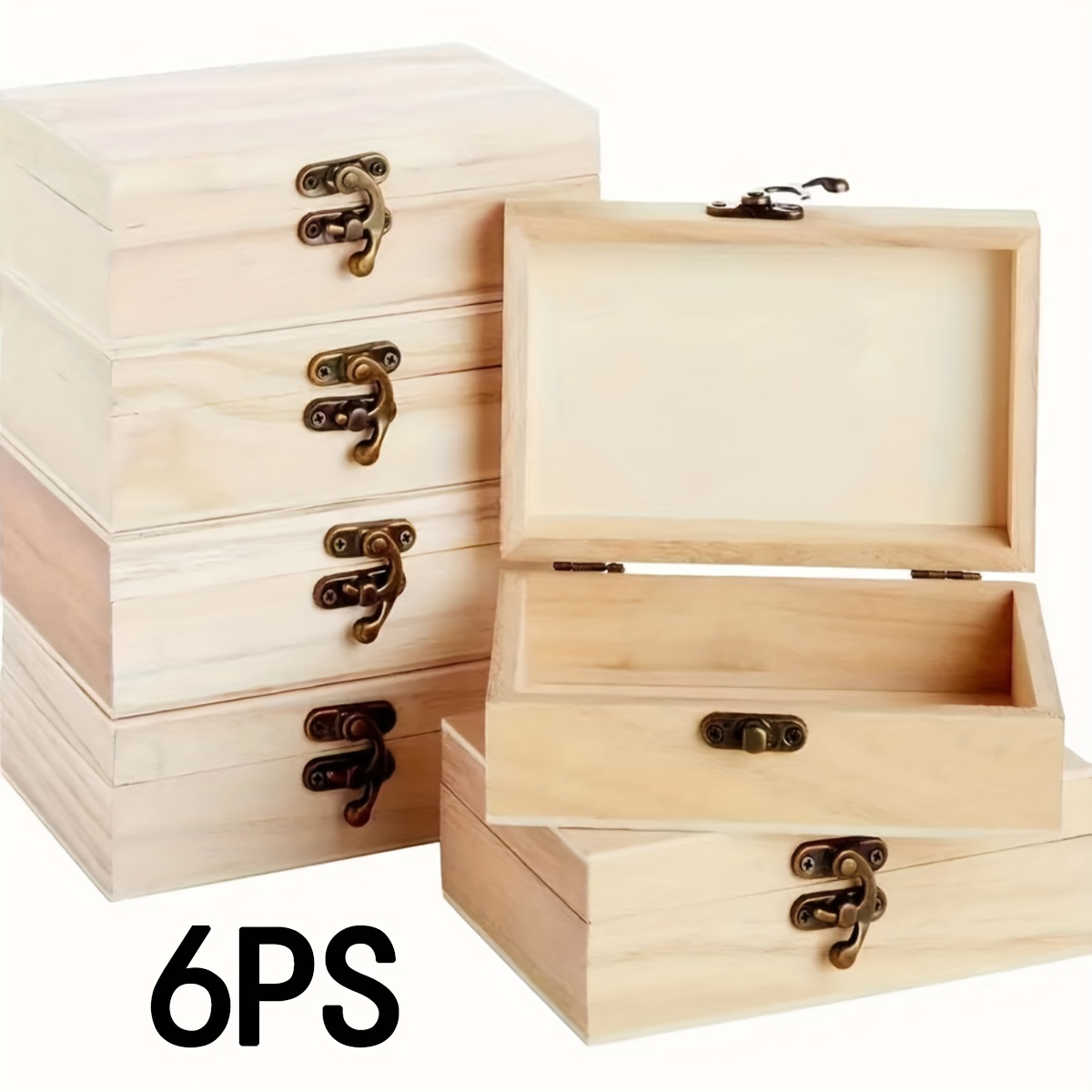 6pcs Unfinished Wooden Jewelry Box, Featuring A Hinged Lid And Clasp, A Easy Decorative Wooden Box For Collections, Crafts, Jewelry Storage, And Holiday Gift , Jewelry Boxes This product is available on TEMU. Click the button above to view full details, photos, and reviews on the TEMU website. Prices may vary.