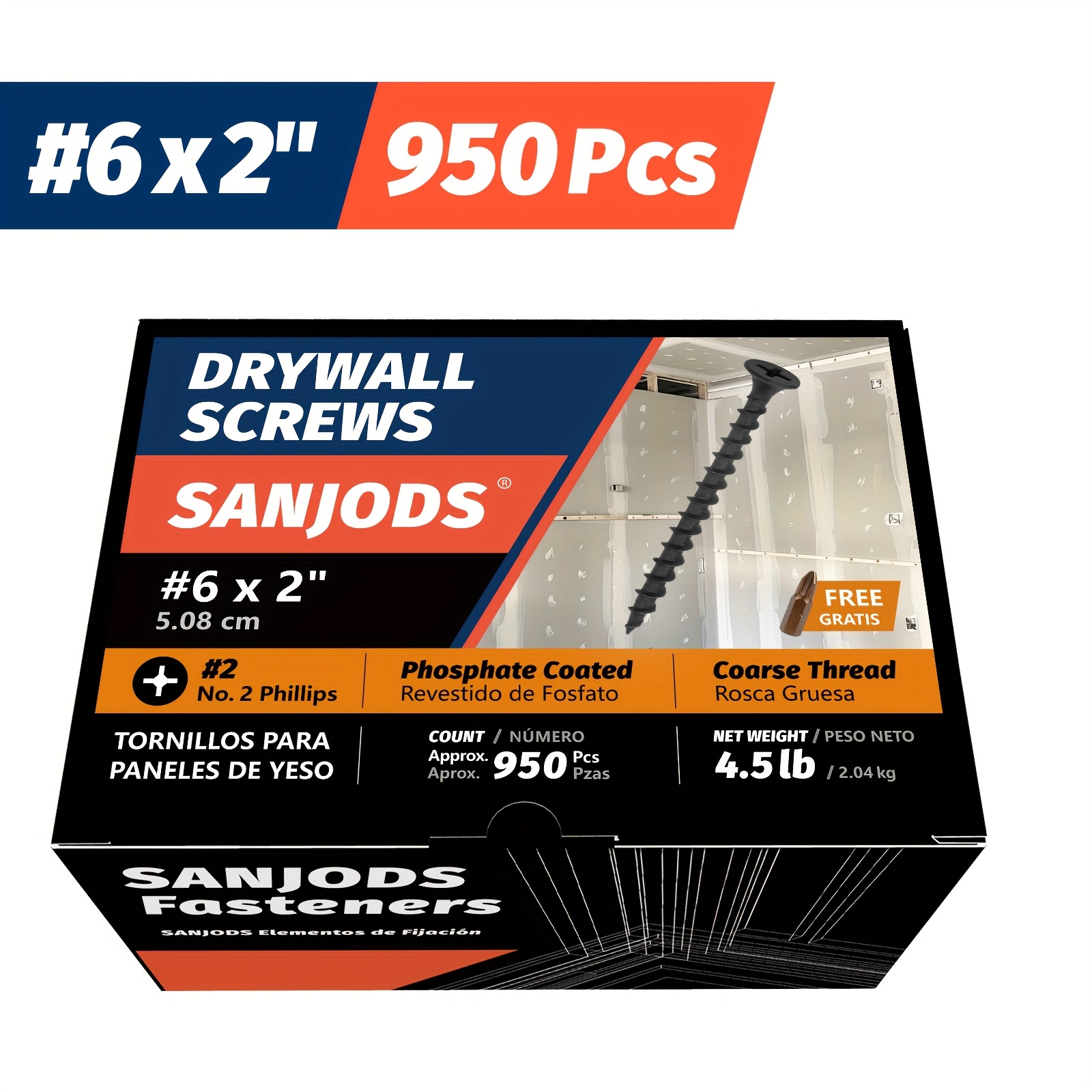 950pcs Sanjods #6 X 2" Drywall Screws, #2 Phillips Bugle Head, Coarse Thread , Black Phosphate Coated Carbon Steel, 4. For Wood And Drywall Projects This product is available on TEMU. Click the button above to view full details, photos, and reviews on the TEMU website. Prices may vary.