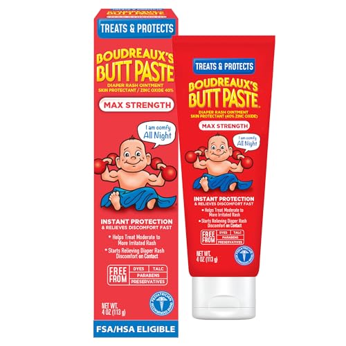 Boudreaux’s Butt Paste Max Strength Diaper Rash Cream for Baby, Ointment With Zinc Oxide, 4 oz TubeThis is a top-rated Amazon Best Seller.