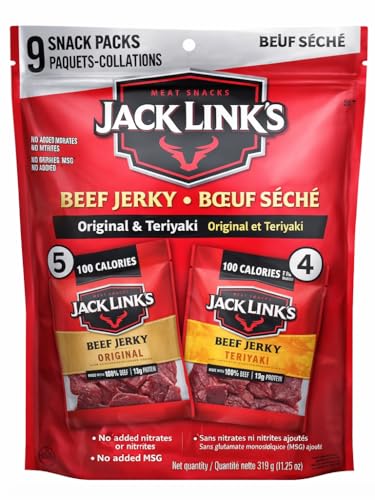 Jack Link's Beef Jerky Variety Pack - Original and Teriyaki - (9 Pack) 1.25 oz Bag - Ready to Eat Protein Snacks - 13g Protein per Serving - Made with 100% Real BeefThis is a top-rated Amazon Best Seller.