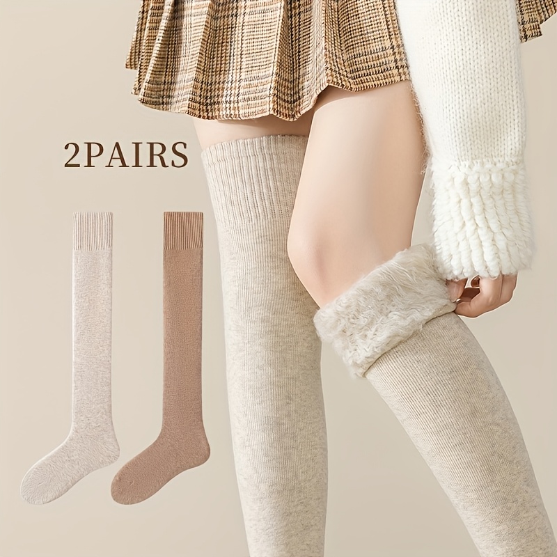 Of Women's Large Size Plush Knee High Socks, Large Size, Solid Colour, Thick And Warm Plush Lining, Fluffy Knee High Socks, Suitable For Autumn And Winter.