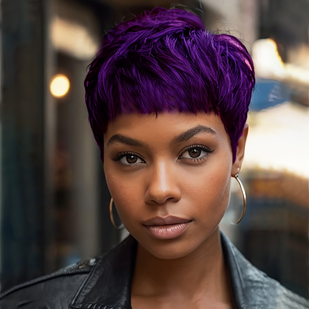 Vibrant Purple Cut Wig With Bangs, Synthetic Wavy Hairpiece For Women, Perfect For Christmas And Parties This product is available on TEMU. Click the button above to view full details, photos, and reviews on the TEMU website. Prices may vary.